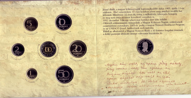 Inklusive 2005 Ungarn 10 Forint K/N BU Attila Jozsef